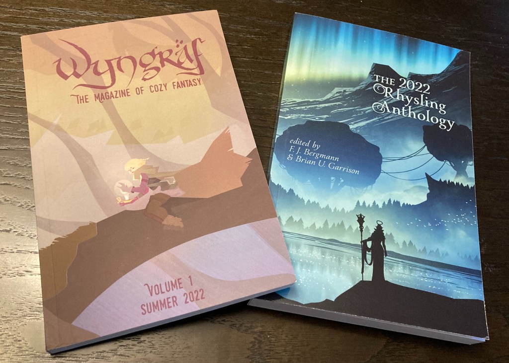 Lookie what I recently got: copies of Wyngraf and the 2022 Rhysling Anthology. Gorgeous covers, right? I know I’m biased, but I really like the contents as well.