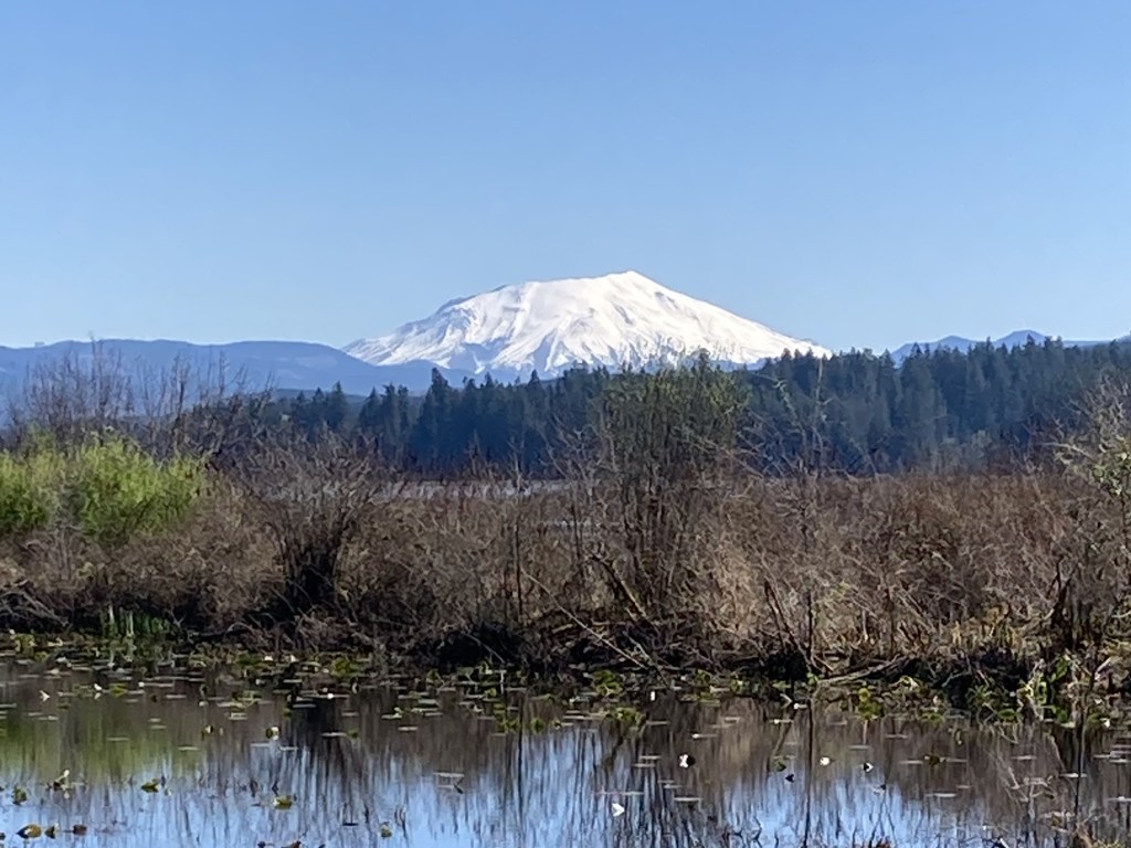 This morning we stuck closer to home and went to the Tualatin River National Wildlife Refuge. We lucked into more great weather. My older son commented as we walked about how peaceful it was, and then he shared with me how he thinks there are various types of “Oregon peaceful”: beach peaceful, forest peaceful, desert peaceful, mountain peaceful, cave peaceful. (I was very tempted to tell him he has the makings of a great poem in that insight, but that doesn’t seem to be his thing.) When we got home, I realized that a lot of my novella, Thrice Petrified, is about restoring some of those types of peacefulness to the landscape and the creatures (fantastical and otherwise) inhabiting them.